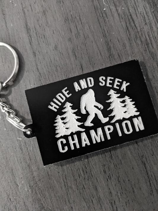 Bigfoot Keychain - Hide and Seek Champion - Don't Stop Believing - Sasquatch Yeti