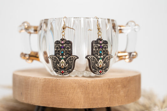 Hamsa Hand Earrings - 7 Chakras Earrings - Protection Earrings
