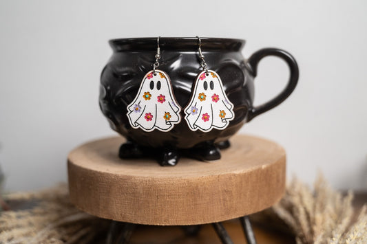 Groovy Floral Ghost Earrings - Halloween floral ghost Earrings