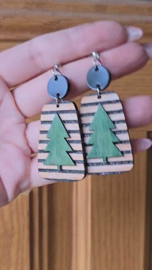Christmas Tree Earrings - Minimalist Christmas Tree Earrings - Christmas Dangle Earrings