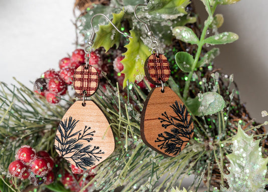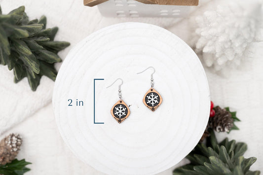 Cute Snowflake Earrings - Wooden Snowflake Earrings - Christmas Dangle Earrings