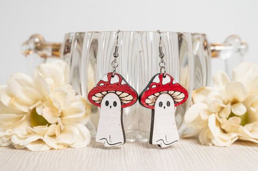 Halloween Earrings - Mushroom Ghost Earrings - Halloween Ghost Earrings