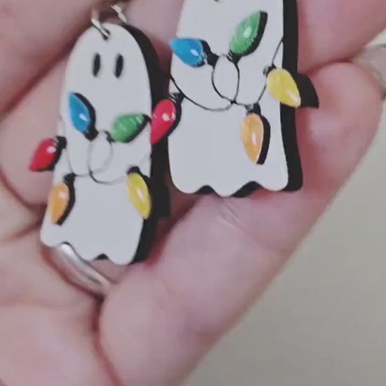 Love Halloween but ready for the Christmas cheer? Our Holiday Ghost Earrings are the perfect mix of spooky and festive! These cute little ghosts are tangled up in colorful Christmas lights β a fun way to celebrate both your favorite holidays.