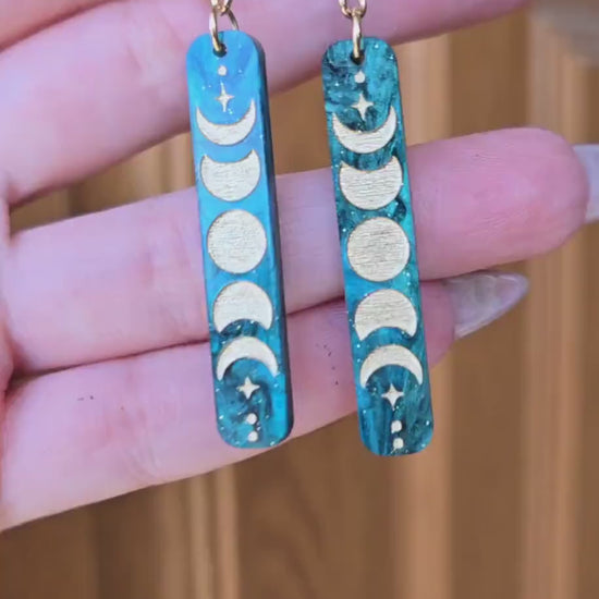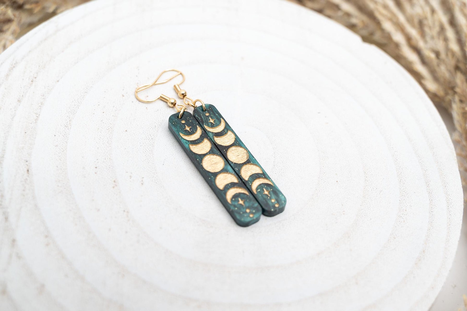 Moonphase Rectangle Earrings for Women Celestial Earrings