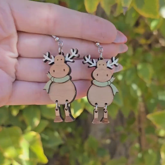 These cute moose earrings are so adorable! The layered moose is made from wood and hand painted, giving a 3d effect for added depth. What makes these Christmas moose earrings so fun are the legs that dangle as you wear them! These truly unique holiday earrings are lightweight and easy to wear all day and throughout the holiday season. The ear wire is made of high grade surgical stainless steel and are perfect for sensitive ears, but are also very durable and comfortable to wear.